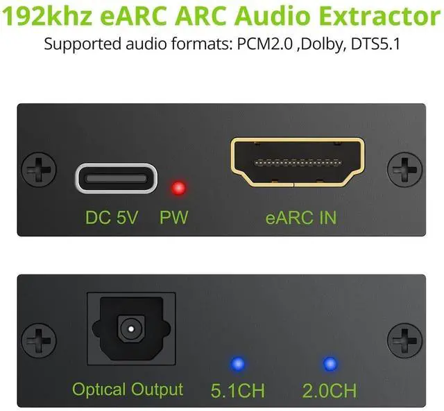 Audio Converter: Convert your TV's HDMI eARC/ARC signal into high-quality optical audio output(Note: TV's HDMI port must have eARC/ARC logo for compatibility. Enable CEC only for ARC TVs to activate HDMI features ^^ 192kHz