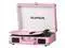 • Vintage-Portable Design: Wrapped in stylish pink PU leather with a classic suitcase turntable, this portable audio player is a statement piece for any room