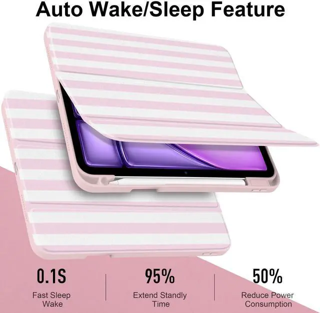 INSTANT RESPONSE & DUAL ANGLES: The magnetic smart cover provides 0.1 s fast response to auto sleep/wake your device, effectively reducing power consumption by 50% and extending standby time. The trifold stand offers two ergonomic modes: a 65 angle for immersive movie viewing and a 30 angle for comfortable typing and working.