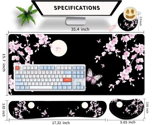 Enhanced Gaming Performance: This comprehensive gaming mouse pad set provides a large 35.4 x 15.7 surface area for smooth and precise mouse movements, giving you a competitive edge in gaming ^^