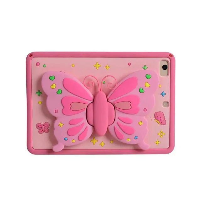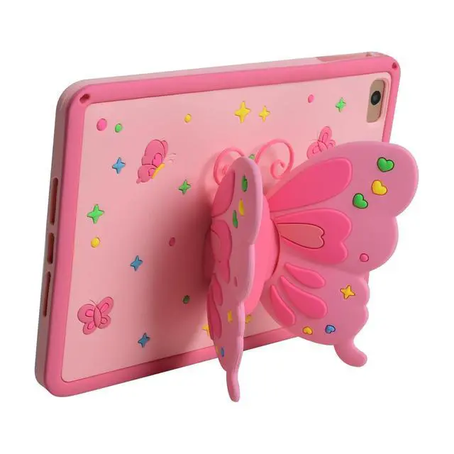 Cartoon Case for iPad Mini 1/2/3/4/5 7.9" MONEHOYSY Cute Soft Silicone Kickstand [Drop Proof,Shock Proof,Anti Slip] Back Stand Cover Case for Kids Children Teens Girls Boys (Butterfly)