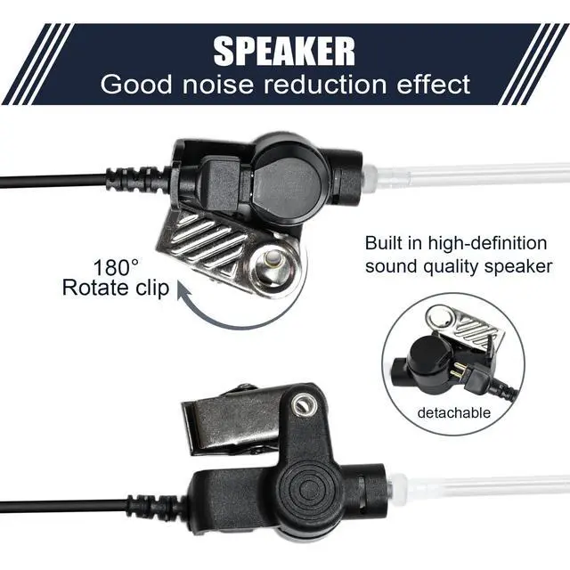 Nickel-plated brass connector ensures stable connection and corrosion resistance in heavy daily use. ^^ Comfort for All-Day Wear Soft ergonomic earbuds effectively isolate background noise and fit securely for long shifts. Lightweight in-ear design lets you wear comfortably during extended work or outdoor operations. ^^ Convenient PTT & Reliable Support Easy-to-reach Push-to-Talk button for smooth hands-free use. Built-in 3.5 mm audio jack for extra usage flexibility. We provide 30-day warranty support for your daily use.