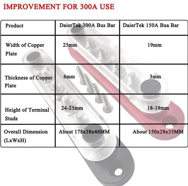 What is the best bus bar for a 3000W inverter? [300A Heavy-Duty Power Handling] Power your high-wattage equipment with confidence. Rated for a massive 300A continuous load and compatible with 12V, 24V, and 48V DC systems, the FUZIDDN bus bar is the perfect hub for inverters, trolling motors, and large battery banks. It ensures stable power delivery without overheating, even under peak demand. ^^ Will this bus bar rust in a saltwater boat environment? [Marine-Grade Corrosion Resistance] Built to survive the harshest maritime conditions. Featuring a tin-plated copper plate and brass terminals, our marine busbar offers superior conductivity and maximum resistance to salt spray and humidity.