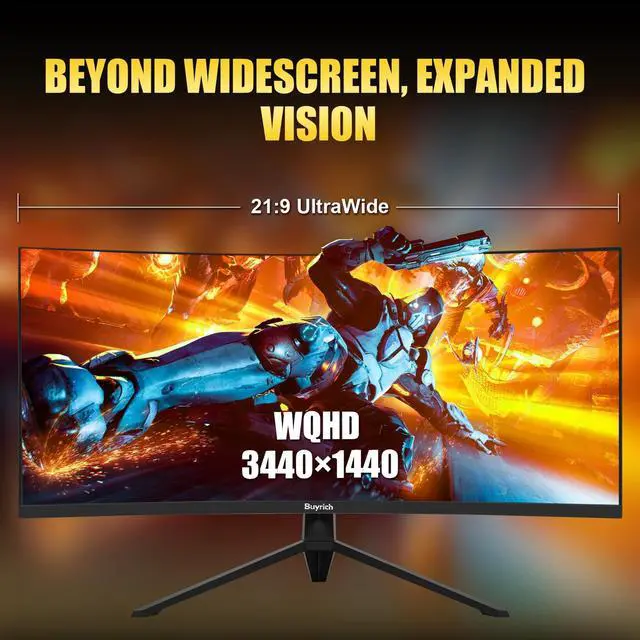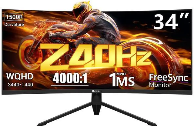 BUYRICH 34 Inch Ultrawide Curved Gaming Monitor, UWQHD (3440x1440), 240Hz, 1ms MPRT, HDR400, Fast VA, PIP/PBP, AI Crosshair, AIPQ (Visual Enhance), MPRT 1ms, HDMI 2.1 * 2, DP 1.4 * 2(DP Cable Incl. )