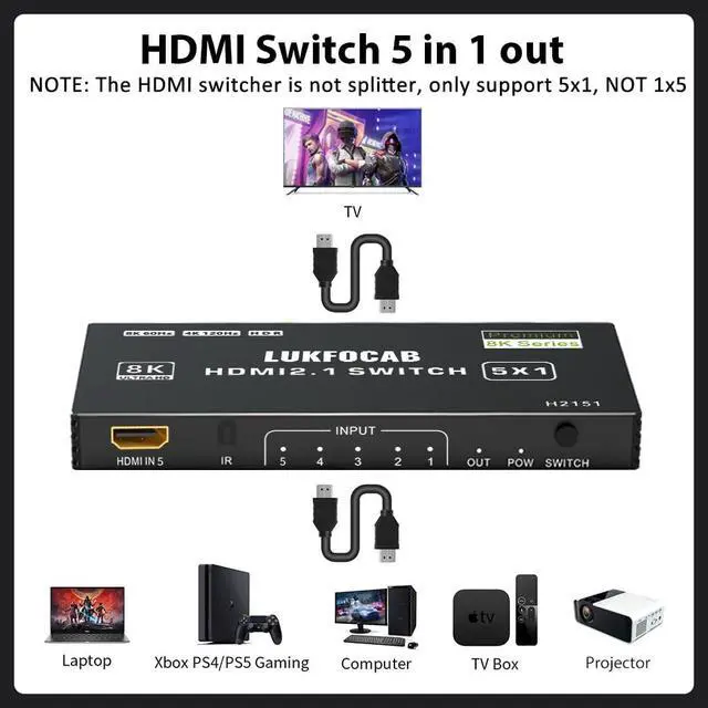 Wide Compatibility: The HDMI switch 5 in 1 out works well with PS5/3/4/4 pro, Xbox series X/S, Xbox 360, Fire TV Stick, Blu-ray player, NS, DVD player, laptop, PC, HDTV, projector, Nvidia 3080Ti, 3070Ti, 3060TI, and other HDMI capable devices ^^