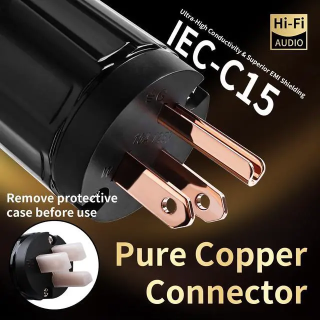 Pure Copper Plugs: 5-micron thick plating (thicker than standard 2-3 microns) ensures longer-lasting corrosion resistanceno oxidation even with daily use. The pure copper core ensures smooth plugging/unplugging, making this replacement power cord highly reliable. It eliminates poor contact, signal drops, or fuzzy audio, guaranteeing crisp, stable performanceno glitches, even after 1, 000+ insertions. ^^