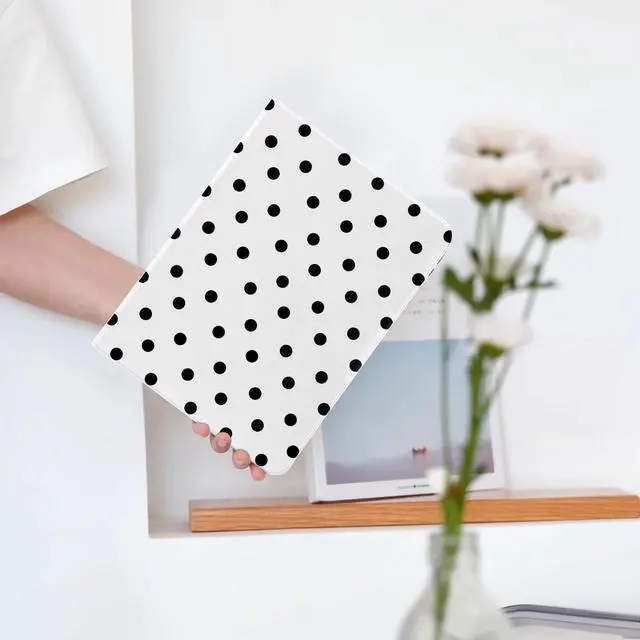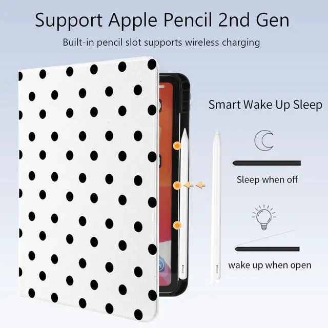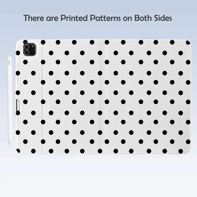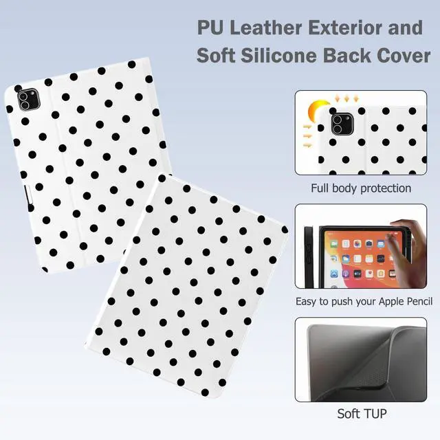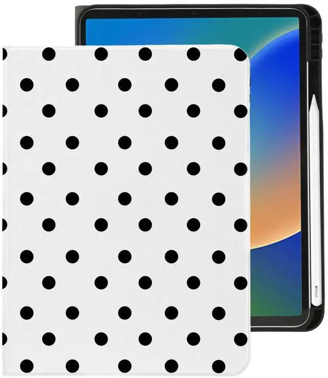 BlHMCASE Cute Black Polka Dot for iPad Air 11 Inch Case 7th/6th Generation (M3/M2) 2025/2024 with Pencil Holder, Auto Sleep/Wake and Multiple Viewing Angles, White Leather Soft TPU Back Cover