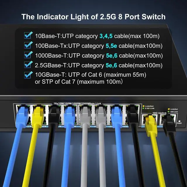 Durable Hardware & Wide Compatibility: Metal housing with dynamic LED indicators for real-time status monitoring. Compatible with Cat5e/Cat6/Cat7 cabling and supports 10GBase-T up to 100m with Cat7 STP. ^^