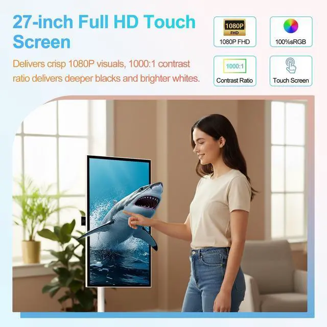 Just Watching: This large 27-inch FHD IPS touchscreen lets you do more than just watchtap, scroll, swipe and interact with ease. From streaming shows and following workout videos to video calls and daily apps, everything feels clearer, bigger and more intuitive than on a phone, tablet or standard TV. ^^ Android 15 Smart System Turn It On and