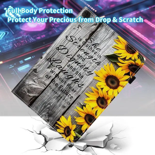 BFUKVOU Case for iPad (A16) 11th Generation 11 Inch 2025, iPad 10th Generation 10.9 inch 2022,Card Slot PU Leather TPU Case Pen Holder Auto Wake Sleep,Sunflower Bible Verses Proverbs 31:25
