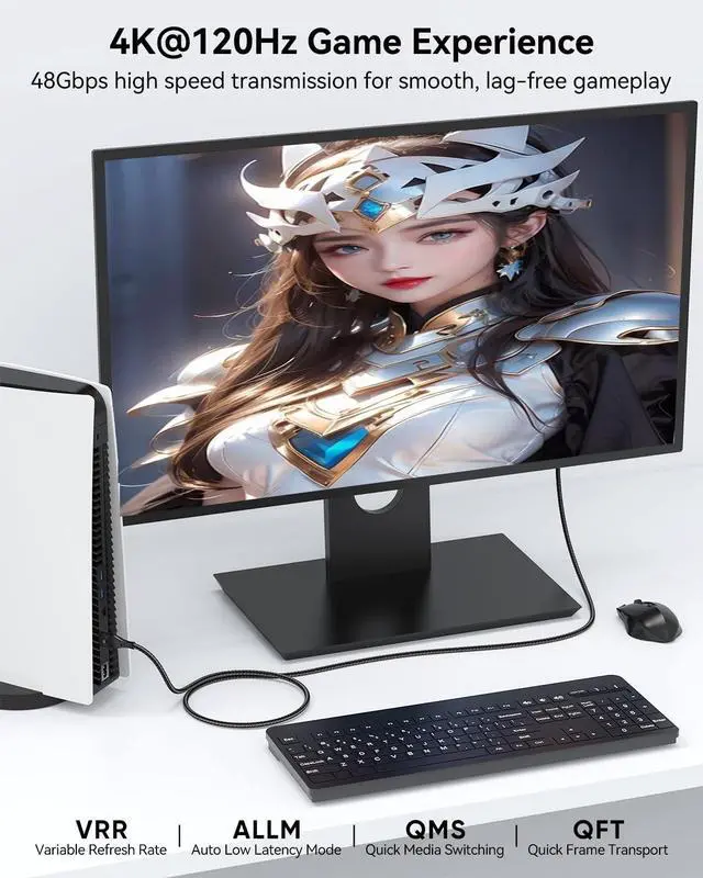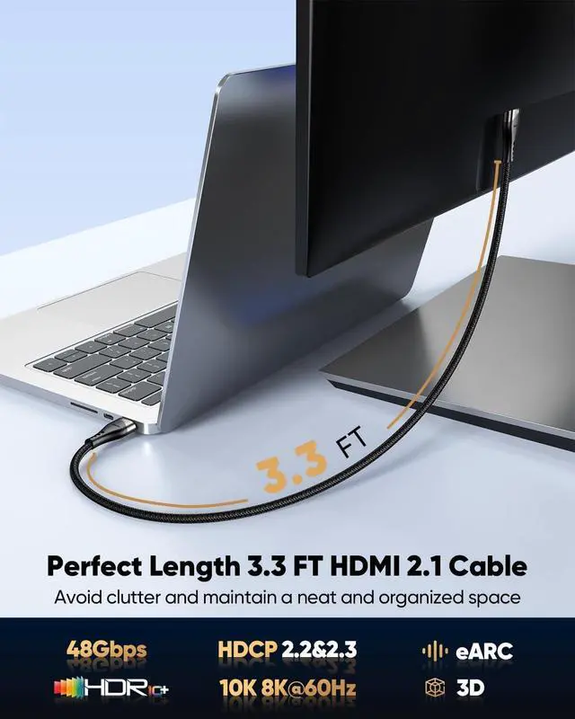 Maximize the performance of your graphics card and CPU. Compatible with VRR (Variable Refresh Rate), ALLM (Auto Low Latency Mode), QMS (Quick Media Switching), and QFT (Quick Frame Transport) ^^ Broad CompatibilityEasily connect an HDMI-compatible PC/Laptop to a monitor or projector with HDMI for crystal-clear eARC audio and 8k/4k video. Also, eARC HDMI cable is compatible for Sound Bar, HDTV, Blu-ray Player, Fire TV, Apple TV, PS5, PS4, Xbox, Switch, and more HDMI port devices. Enjoy hassle-free connections and unleash the full potential of your devices ^^ Anti-Interference + Thoughtful DesignHDMI to HDMI cables are made of pure copper and come with triple-layer shielding.