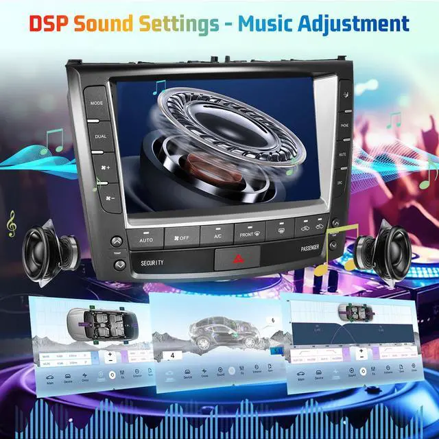 GPS Navigation: For Lexus IS350 stereo stay connected on the move with 5G WiFi, enabling rapid downloads and buffer-free streaming of online maps, music, and content. The highly accurate GPS navigation system, powered by up-to-date mapping data, guides you precisely to your destination, even in the most complex road networks. ^^ DSP Sound Processor and