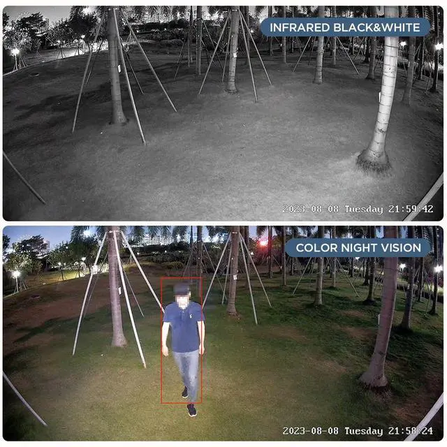 Overview: 5 Megapixels ultra high definition with 2592 x 1944 resolution, and build with 2.8 mm wide angle lens, field of viewing up to 110 degree. Smart dual light full color night vision, the IR light is normally on with b/w video for less standby power consumption to reduce light pollution, when a person is detected, the warm light turns on and the camera records the full-color video, when the person is out of the monitored area, the light turns off and turns back to normal IR lights.