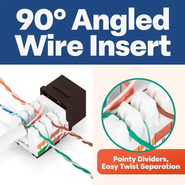 • Compatibility - compatible with our 90 degree angled speed termination tool - easyJACK (B094WB91H3). These cat 6 jacks keystone rj45 can also work in conjunction with a standard punch down tool and punch down stand for convenience.