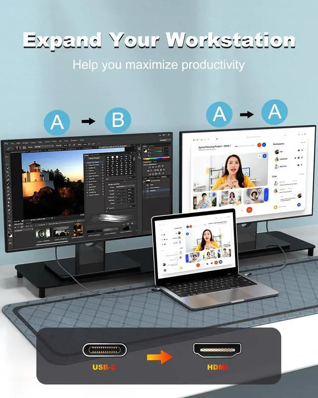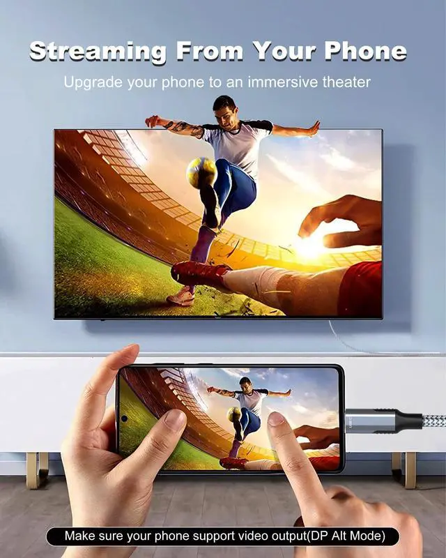 Note: The transmission is Uni-directional, only from the USB-C to HDMI ^^ Plug and PlayThis 8K USB-C to HDMI cable is plug and play, no driver required. Seamlessly connects usb c equipped source devices to devices with HDMI ports. supports DP, DP++, DisplayPort++. HDCP compliance ensures smooth media streaming without limitations ^^ Durable and Reliable DesignThunderbolt to HDMI cable made with military-grade woven nylon outer sheath, resists tearing and biting, gold-plated connectors resist oxidation and corrosion, Premium aluminum case for greater heat dissipation. Equipped with a high-performance chip, this usb c to hdmi 2.1 cable protects against EMI interference and guarantees secure ^^ Universal CompatibilityUSBC to HDMI Cable compatible with all USB-C devices that support "DP Alt Mode" and Thunderbolt 3/4/5 ports; Compatible with MacBook Pro 2016-2024, MacBook Air 2018-2023, iMac 2017/2020, iMac Pro 2021, Mac Mini 2016 -2024, iPad Pro 2018/2024, iPad Air 2020-2022, iPad Mini 6, supports M1/M2/M3/M4 devices, Surface Book 3, Surface Pro 7, Surface Laptop 3, Chromebook, Dell XPS 15/17, iPhone 15/16, Galaxy S22/S21 and More