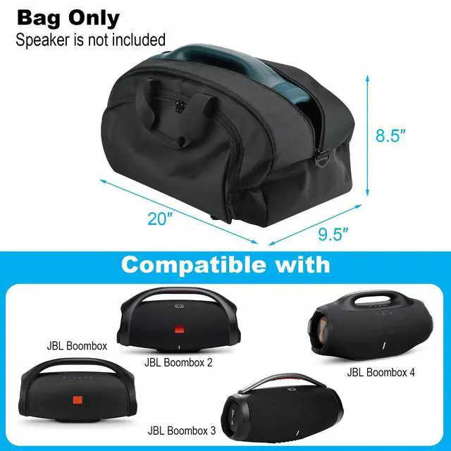 Compatible WithThis travel carrying bag is specially designed for JBL Boombox4, Boombox 3, Boombox 2 and Boombox. Designed with dual shoulder strap, handle strap and shoulder strap, conveniently carry around heavy JBL boombox 4, protect the speaker from dusts, scratches and accidental drops. ^^ Full ProtectiveThis speaker bag is made of 600D polyester exterior, inner 210D nylon and padded with 5mm EPE foam, which is dustproof, shockproof and moisture-resistant, protecting the speaker from dust, scratches and accidental drops, provide full protection for JBL Boombox 4.