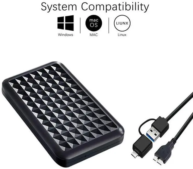 Package Includes: 1x Portable external hard drive1 x 2in1 USB Cable1 x User's manual