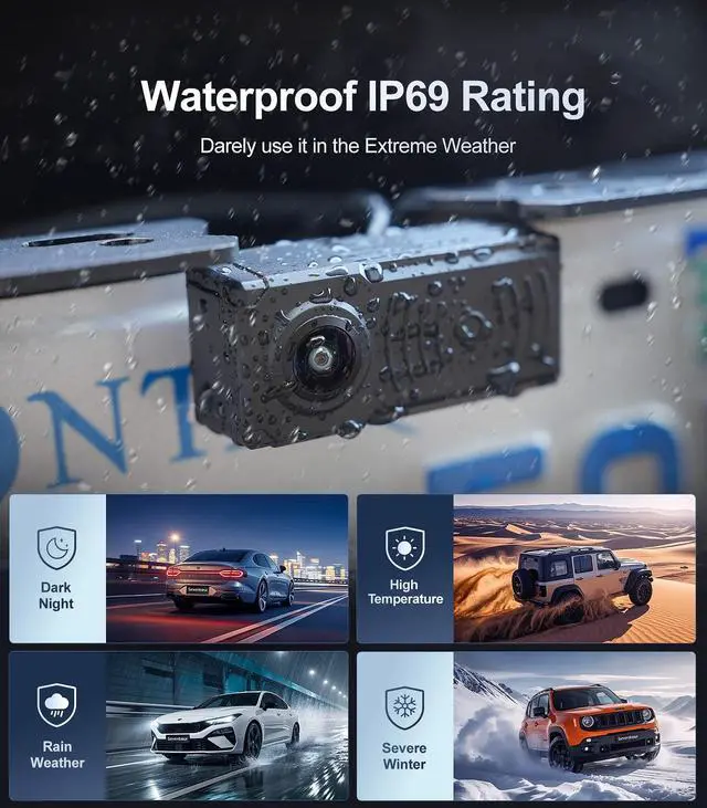 ^^ IP69 Level WaterproofThis rear camera for cars shell is made of high-density impermeable material with efficient dustproof, shockproof and waterproof performance, which can adapt to a variety of extreme weather conditions for stable use and ensure the camera is durable. ^^ Multi-Function AdjustmentYou can adjust the Brightness /Contrast / Saturation /Tint /Zoom and Camera Mirror display of the back up camera with screen according to your preferred needs. ^^ Standard 2 kinds of camera mounting brackets TC-1 comes with 2 kinds of backup camera mounting brackets as standard, according to different car license plate position, you can choose the most suitable mounting bracket, bracket-1 allows the camera to move up and down, bracket-2 allows the camera to move left and right.