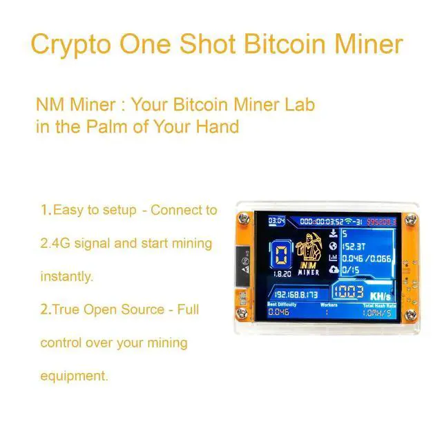 Educational Miner: Connect to 2.4G signal and start mining instantly. Supports only 2.4 GHz signals; does not support 5 GHz signals or mixed signalsA dedicated one-click mining device crafted for learning, boasting minimal power usage and quiet performance. It is perfectly suited for newcomers, school demonstrations, at-home education, and all who desire a secure and simple approach to grasp blockchain hashing basics. ^^ 2.8 -inch