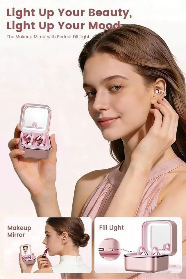 Audio Companion: This isnt just earbudsits sleek charging case doubles as a pocket vanity studio, complete with a built-in mirror and adjustable LED light. Touch up makeup, check your look for video calls, or snap selfies while streaming music/podcastsperfect for on-the-go style. ^^ Built-In Mirror +