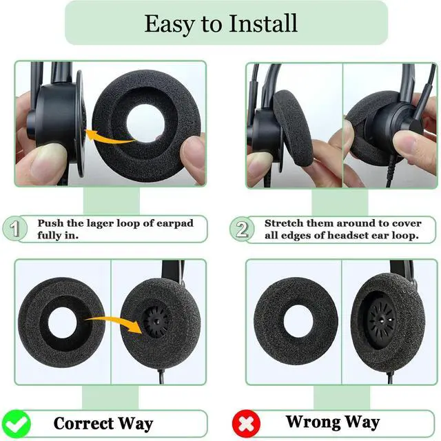 But For other headsets, please consult us for Compatibility Guide and advice. ^^ Enhanced Comfort Foam / DurabilitySuper soft high-density memory foam Plantronics headset ear pads enhance the comfortable experience and are designed for long-term wearing comfort and has strong durability to extend the life of your headphones. ^^ Effortless InstallationSimple installation with no tools needed. Replace unhygienic, worn or unusable ear pads to make your headset brand new again: take off your old earpads and put the new pads align with the headset ear loop to stretch them around to cover all edges (We also provide step-by-step installation video below). ^^ Affordable Package / Service Guarantee Ear Pads x50, Mic Foam Cover x25 (Headphone not included). Your purchase is backed by our 45 days free replacement and 12 months warranty. Pls feel free to contact us for any issue at any time.