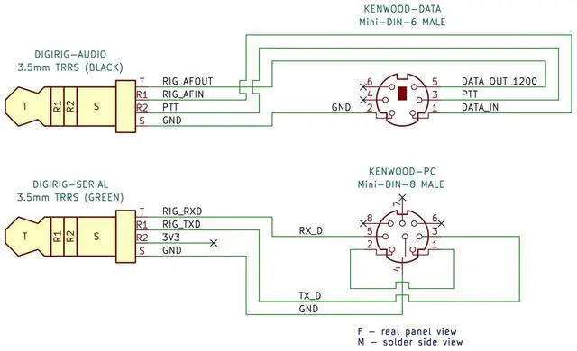 Digirig Mobile 1.6 + cabless for Kenwood transceivers using MiniDin6 and MiniDin8 connectors - coiled cables keeps things nice and tidy by preventing knots and kinks - one 1200 baud audio cable (MiniDin6) and one RS-232 serial CAT cable (MiniDin8) - about 24 relaxed, 72 fully stretched - shielded and RF choked with ferrite beads on both ends to prevent RFI - premium quality materials and craftsmanship - these cables require Digirig Mobile Revision 1.6 or later configured for RS-232