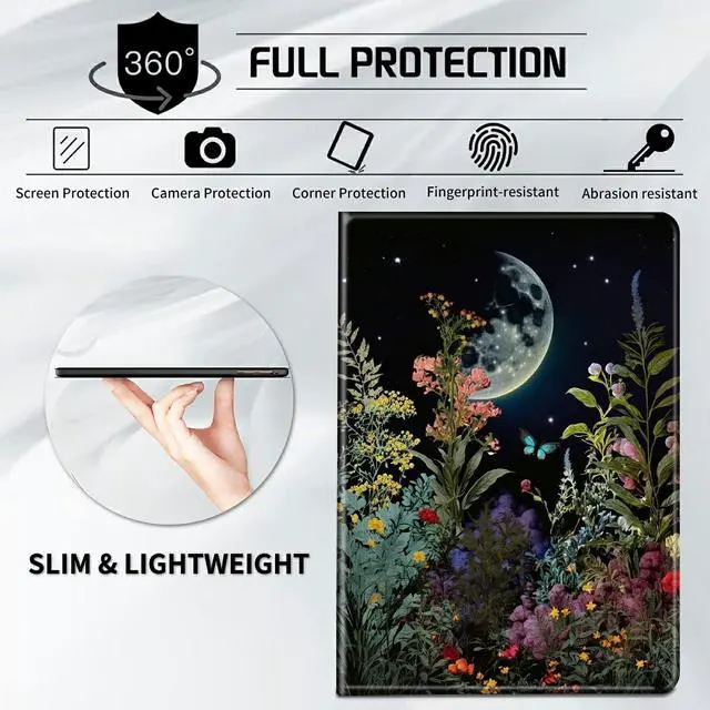 Design Style: Moon Flower Floral for Fire 7 Tablet Case 2022 with Adjustable StandAllows to set multiple horizontal standing angles for viewing, no angle limitAnti-Slip Design on the Cover Lining Can Help your Tablet Stand Support Stably for Fire 7 Tablet Case 12th GenerationBuilt-in Magnetic Strip Provides Auto Sleep / Wake, Simple operation and power savingTurn on the Cover to Auto Wake up and Turn off the Cover to Auto Sleep Protection FeaturesPU Leather Exterior + Soft Microfiber Lining Provide full protection for your tablet from scratches, impacts and other daily damagesPackage includes: for Kindle Fire 7 Case 12th Generation x1Exquisite Pattern DesignClear patterns, bright colors, never fade, A variety of patterns for you to chooseNot only protect your Tablet but also give it a unique and beautiful appearanceMakes your tablet different and eyes-catchingMore Exquisite and interesting Patterns, Please Search"CGFGHHUY Fire 7 2022 Case"