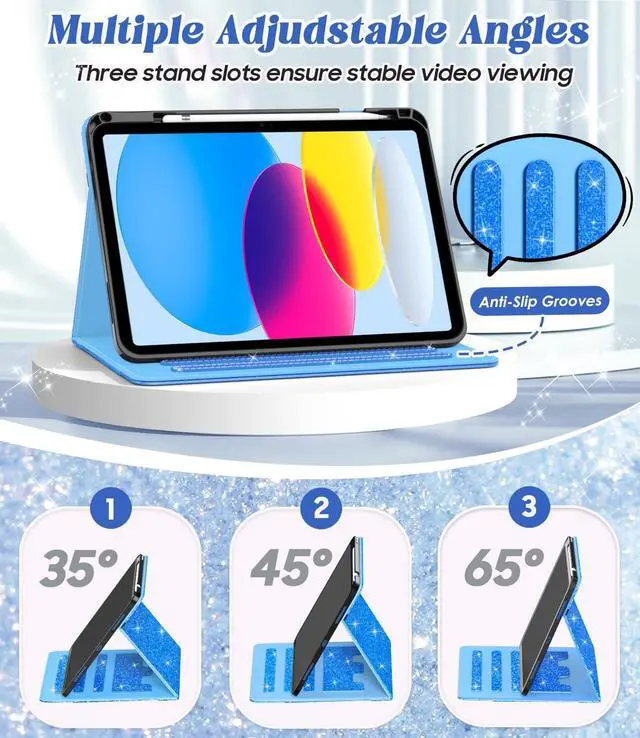 Adjustable Angle: The Zonefoker ipad 11th/10th gen case has three slots with upgraded anti-slip material; you can easily adjust it to different angle positions to reach your most comfortable viewing and typing angles ^^