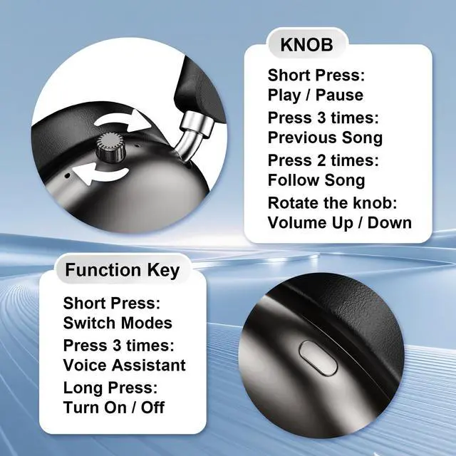 WooAwesome New Over-Ear Wireless Headphones with Microphone, HiFi Clear Call, USB-C Charging, Comfortable Fit with Head. Compatible with Mobile Phones, Computers, MP3. Bluetooth Headphones (Black)