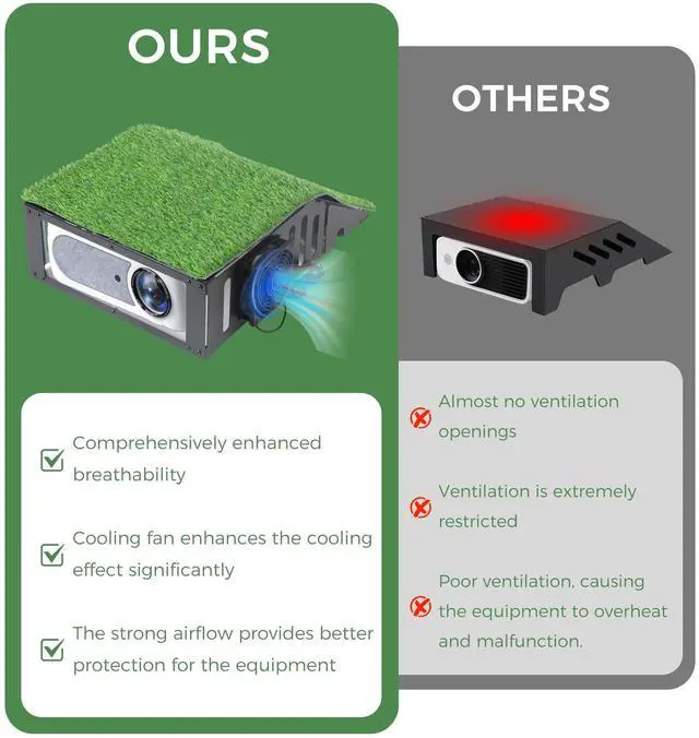 Active Cooling System: Beat the heat for a brighter, longer-lasting performance. We didn't just add vents; we built an active cooling system with a powerful fan. It tirelessly works to prevent overheating, ensuring your projector stays reliably cool even during marathon sessions, so you can focus on your swing, not the temperature.