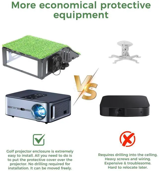Setup Simplicity, Grounded in Strength: Ditch the complex, expensive ceiling mounts! Our golf projector protector features a practical floor-standing design that makes installation a breeze. Crafted from a robust, powder-coated steel frame, it offers rugged durability and easy placement anywhereindoors or outgiving you total flexibility fo