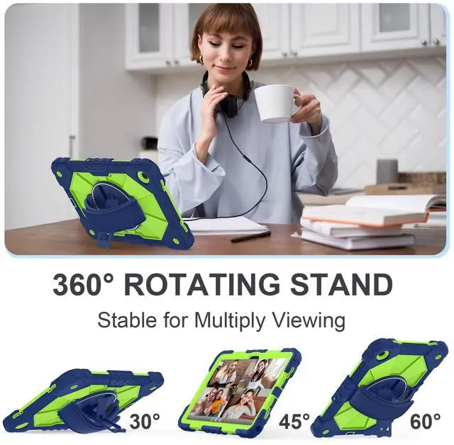 The 360 rotatable hand strap provides a firm grip for extended use, allowing you to switch between portrait and landscape orientations instantlywithout straining your wrist. Engineered for teachers, technicians, and workers who require mobility, on-the-go data entry, managing digital resources, or presenting materials while walking ^^ Heavy-Duty DefenseEngineered for max durability, this Galaxy A11+/A9+ case features a robust 3-layer defense system. A rigid inner shell maintains structural integrity, while a shock-absorbent silicone bumper disperses vibrations from impacts and falls. Effectively guards your A11+ tablet against accidental slips, drops, and daily wear.