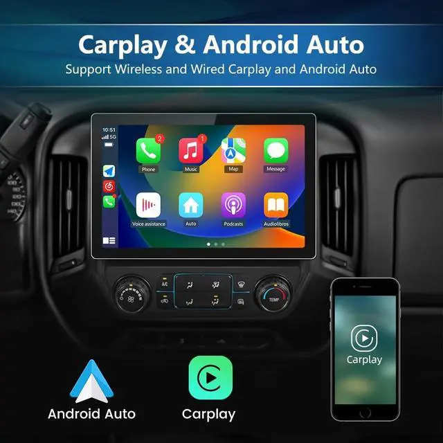 Applicable ModelsFor Chevy Silverado GMC Sierra 2014-2018 ^^ Android 12 SystemAndroid 12 operating system, ensure smooth and fast operation. Provide you with a more comfortable experience and convenient operation. ^^ Wireless Carplay & Android AutoYou can choose wireless connection to Carplay or Android Auto. By connecting your iPhone or Android phones, you can access mobile phone address book, notifaction, message, map navigation, music and so on. ^^ GPS Navigation & WiFi ConnectSupport online maps, after connected to WiFi, you can use GPS Navigation at anywhere. This item allow install or delete android apps from Application Store, as the same as smart phone.