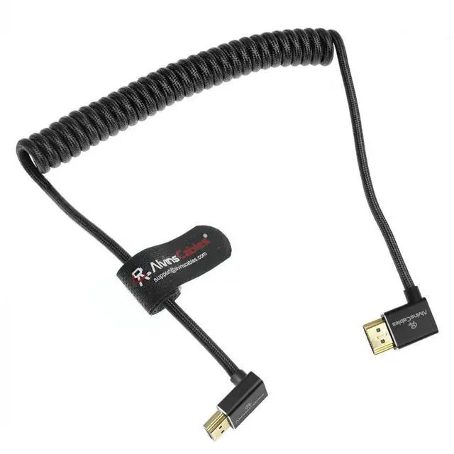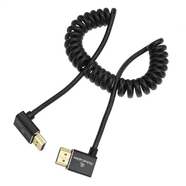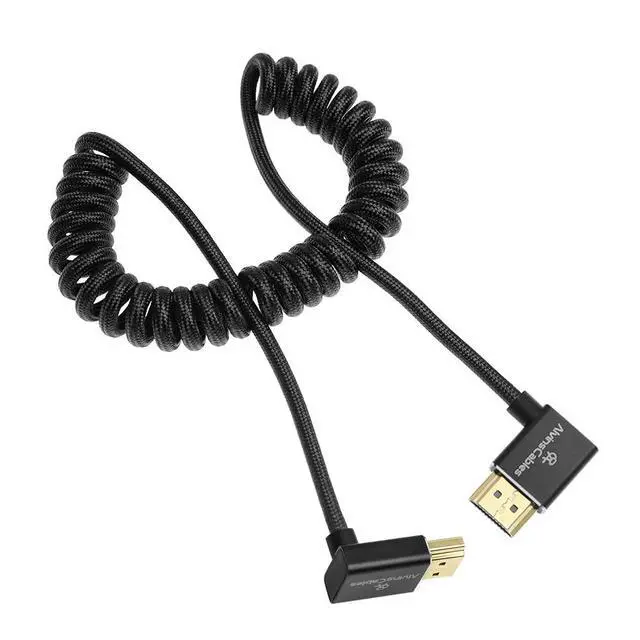 Alvin's Cables 8K HDMI 2.1 Cable 48Gbps 8K@60Hz 4K@120Hz High-Speed Braided Coiled Cable for Sony FS5 FS7 FX9,BMPCC,for Canon C300 C500,for Atomos Ninja,for Feelworld,Right to Up Angle Black