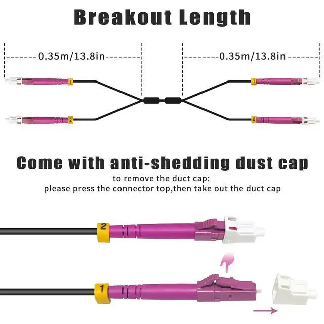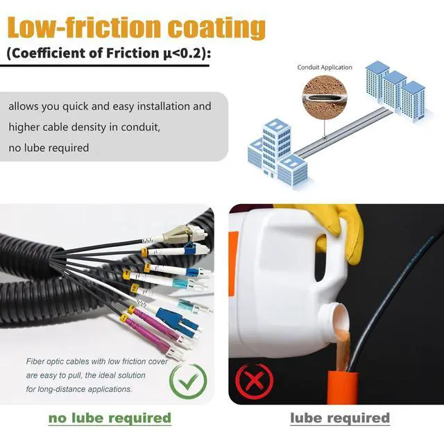 Fiber Cable: Surrounded by tough stainless steel tube, which can provides additional crush and rodent protection ^^ 2-Strand OM4 Multimode Fiber Optic Cord with Low Friction Flame Retardant LSZH Jacket (Coefficient of Friction < 0.2 ), which allows you quick and easy installation and higher cable density in conduit. ^^