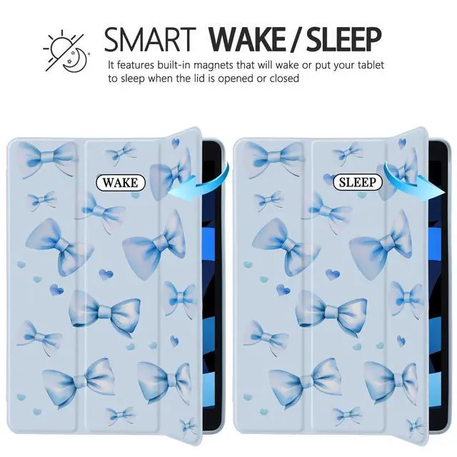 Auto Sleep Wakeup: Bow Pattern iPad Cover Built-in magnet, Sensitive Auto Wake/Sleep, More energy saving, extends your iPads batter. Slim Lightweight Tri-fold Stand with viewing and typing angle ^^