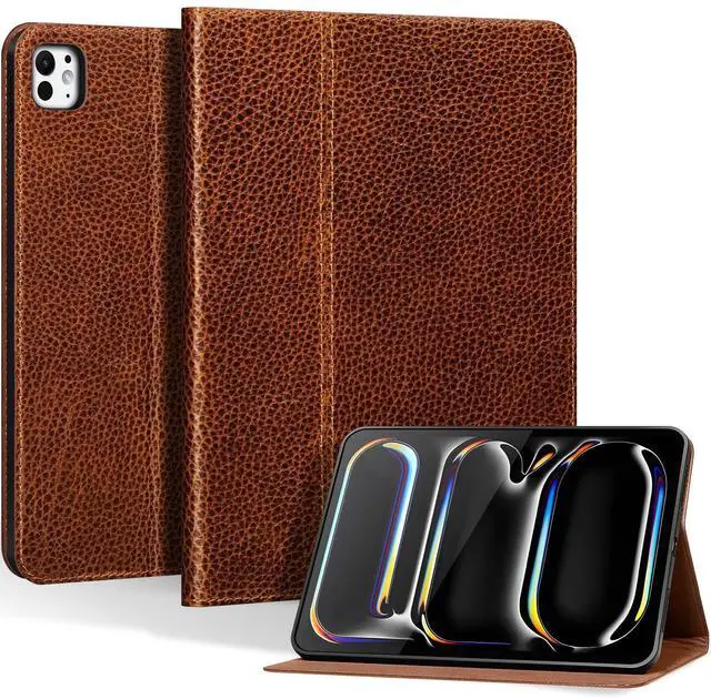 Thryxop Genuine Leather Case for iPad Pro 11 inch Case (M5/M4) 2025/2024 ^^ Slim Protective Cover with Adjustable Stand, Auto Wake/Sleep, Premium Leather ^^ Yellow Brown