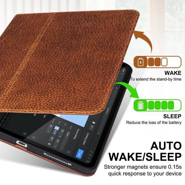 • Auto Sleep/WakeSupport auto-wake/sleep function with easy snap on and off the iPad protective case to help extend your iPads battery life.