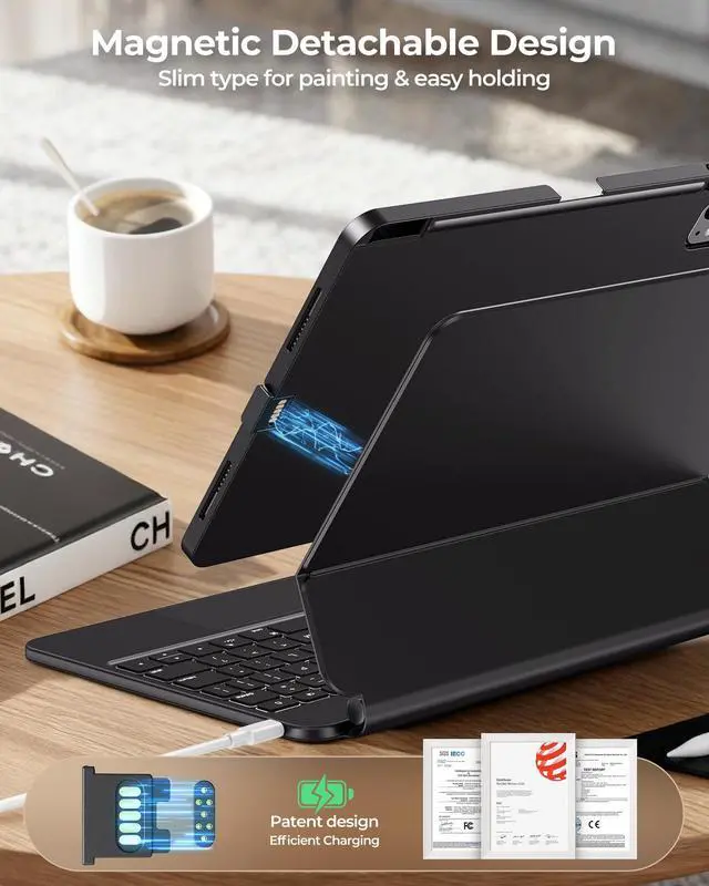 Adjustable Magnetic Stand: Magnetically secure your iPad air11 m2/m3/m4 to the keyboard case, adjust the floating cantilever stand in one smooth motion, and instantly turn your iPad into a high-performance laptop ideal for travel, business, and school ^^