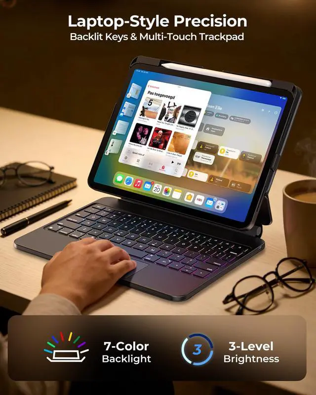 Backlit Keys: Tailor your typing environment with 7 adjustable colors and 3 brightness levels. Engineered specifically for the iPad air 11 inch, this keyboard transforms low-light typing into a high-efficiency task, adding a sophisticated, personalized touch to your Pro-level setup ^^