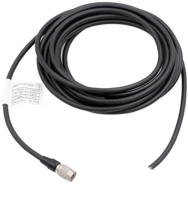 The cable has 6-pin female connector on one end, and 6-core bare wire (also called pigtail open leads) on the other. The cable has a label with pin-to-wire color assignment