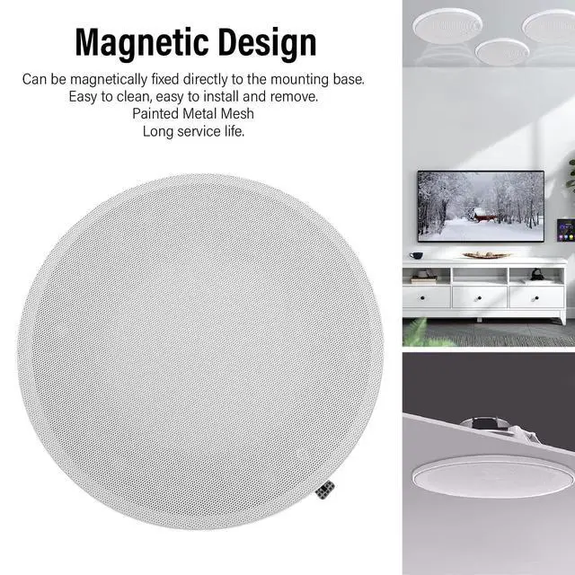INNOVATIVE MAGNETIC DESIGN: The speaker grille cover features an innovative magnetic mounting base that allows for secure and effortless attachment. This thoughtful design simplifies both cleaning and installation, and the preinstalled screws make it a breeze to mount the base to ceilings or walls, ensuring a stable fit.