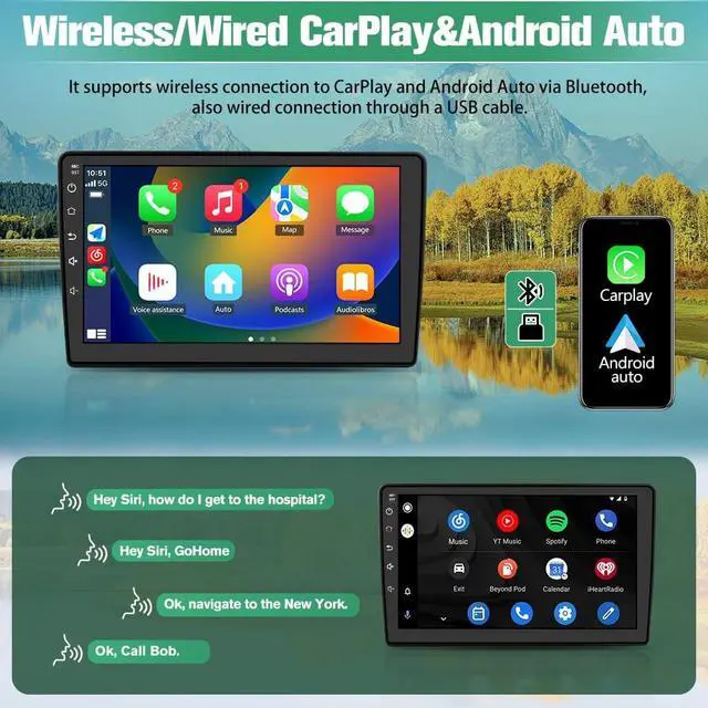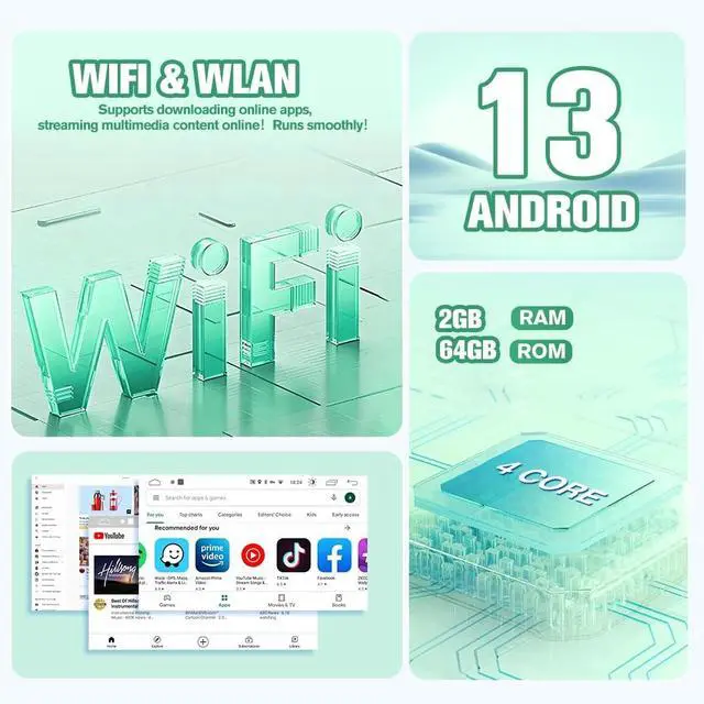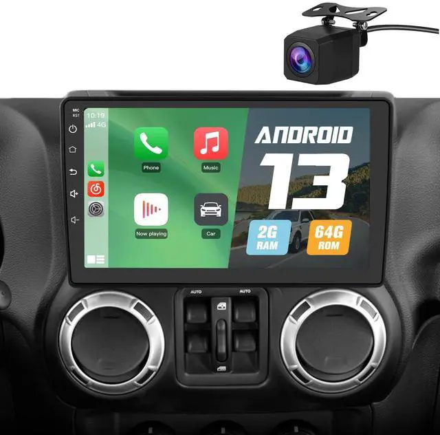^^ Wireless CarPlay & Android Auto This android head unit supports both wireless and wired Apple CarPlay and Android Auto, giving you full hands-free access to navigation, calls, messages, and music. Easily connect your phone via Bluetooth or USB and use voice control with Siri or Assistant of voice. It also supports screen mirroring to display your phones apps directly on the touch screen radio for car. ^^ Powerful Android 13 System with Wi-Fi Running on Android 13, this car stereo for Jeep Wrangler features a smooth quad-core processor, 2GB RAM, and 64GB ROM.