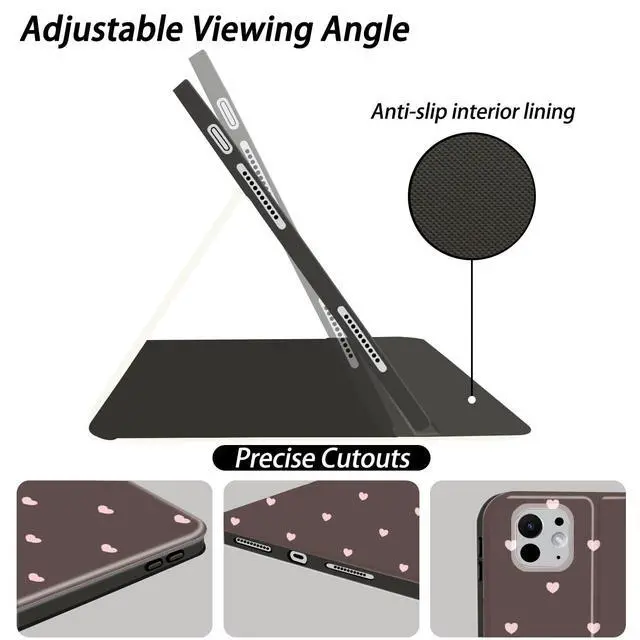 [Compatible with iPad 10th/11th Generation] This kawaii heart case is designed for iPad 10th generation 2022 10.9" (Model: A2696/A2757/A2777), iPad (A16) 11th generation 2025 (Model: A3354/A3355/A3356). NOT compatible with any other models. ^^ [Built-in Pencil Storage] Support Apple Pencil Pro Charging. Conveniently place and remove your pencil at any time. It can prevent you from losing or breaking your pencil. Case ONLY, pencil is NOT included ^^ [Multiple Functionalities] Non-slip interior supports multiple stand angles. Easy to Auto Wake/Sleep, no wasting the energy and extend your tablet standby time and battery life ^^ [High Quality Material] Made of soft TPU and durable textured PU leather cover, provides all-around protection against daily bumps, scratches and accidental drops. The internal honeycomb structure ensures good heat dissipation ^^ [Expert Service Guarantee] If you have any questions about our tablet case, please contact us. We will do our best to solve your problem as soon as possible