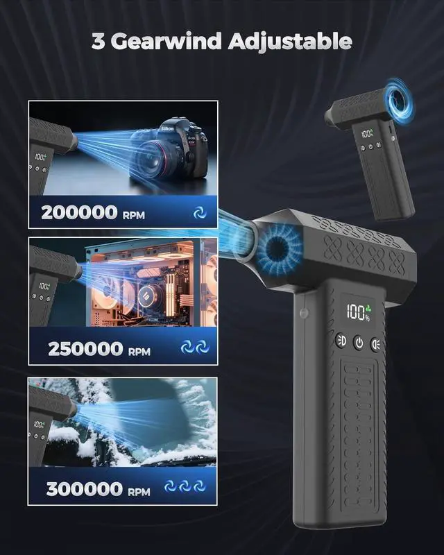 Ideal for Various Situations This electric air blower offers three different air speed settings to suit various cleaning tasks. Whe