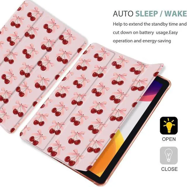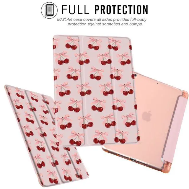 MAYCARI Pink Cherry Wreath Bows Fashion Case for iPad 10.9 inch 2022 with Pencil Holder, Original Pattern iPad 10th Generation Soft TPU Back Protective Cover Shell, Auto Sleep/Wake Slim Shell - Pink