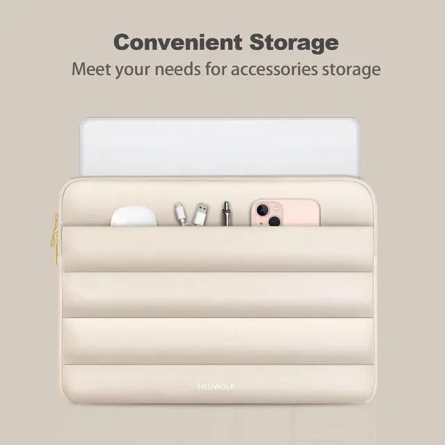 ^^ Convenient Storage: This comfortable Puffy laptop sleeve with extra front horizontal pocket makes your mouse, earphone, pens and laptop accessories organized, offering added convenience.