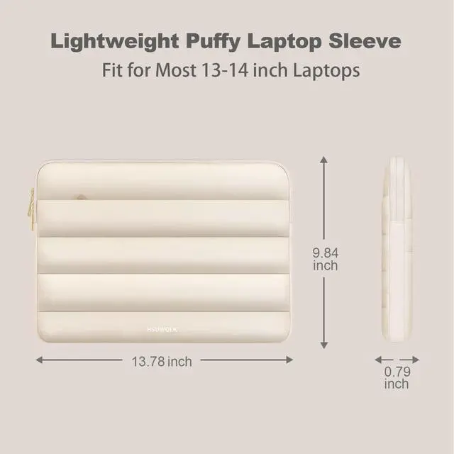 ^^ Material & Protection: Made with soft & lightweight square quilted puffy polyester material, features a polyester foam padding layer and fluffy fleece fabric lining. Protect your laptop from bump, shock and accidental scratches.