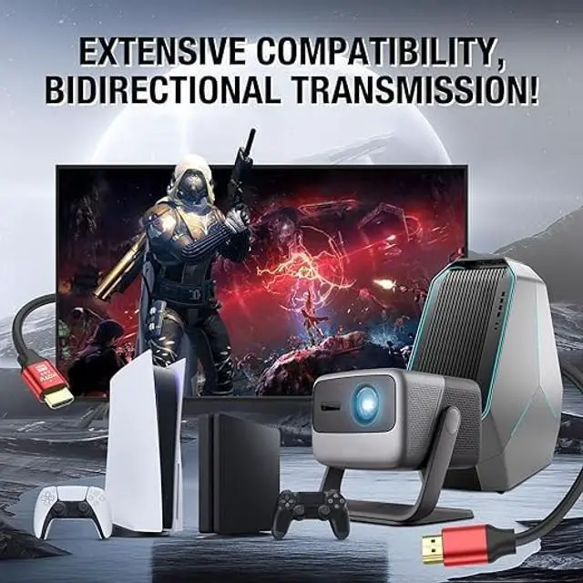 -[Wide compatibility]: Our HDMI cable is suitable for all electronic devices with HDMI interfaces and is backward compatible with HDMI 1.4, 1.3, and 1.2 standards. Such as Roku TV, HDTV, PS5/PS4/PS3, X-box series X/One, laptops, DVD/Blu ray players, projectors, etc.