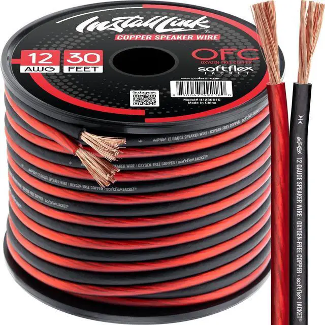 PREMIUM OFC SPEAKER WIRE [ Frosted Red/Black ^^ 30-feet ( 9.1 m) ^^ 12 Gauge ] - Featuring a double conductor, this stranded wire is constructed from high-grade oxygen-free copper. It is perfect for achieving outstanding audio performance, exceptional flexibility, easy stripping and great polarity identification. ^^ OXYGEN-FREE COPPER (OFC) - Made with a copper core and refined to remove impurities and oxygen. This wire will ensure excellent conductivity and low resistance, ensuring superior sound quality and clarity. ^^ PERFECT FOR - Designed to provide adequate performance for any home theater system, car audio speakers or professional studio.